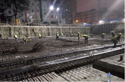 成都位于四川盆地西部的岷江中游地段,地質結構復雜,砂卵石地層居多,中間夾著細砂層。該項目的地基一半以上經(jīng)過釬探后都需要把較軟的細砂層用卵石層換填,這對施工進度造成了較大影響。而且該工程位于金牛區(qū)茶店子橫街,屬于市區(qū)繁華地段,且屬于在原址上改擴建工程,師生們還集中在旁邊待建的教學樓內上課。所以,在狹小有限的場地內,要做到綠色環(huán)保施工,防止噪音擾民是該工程的又一大難點。為了取得周邊居民的理解和支持,項目部在居民區(qū)張貼了安民告示,并積極做好與居民的溝通;部分噪音大的分項工程與學生上課時間錯峰施工,材料選擇夜間進場,土方夜間挖運,每天加班至深夜十一二點。在項目部科學合理的統(tǒng)籌安排下,既保證了工程的快速推進,又達到了和諧、文明施工。