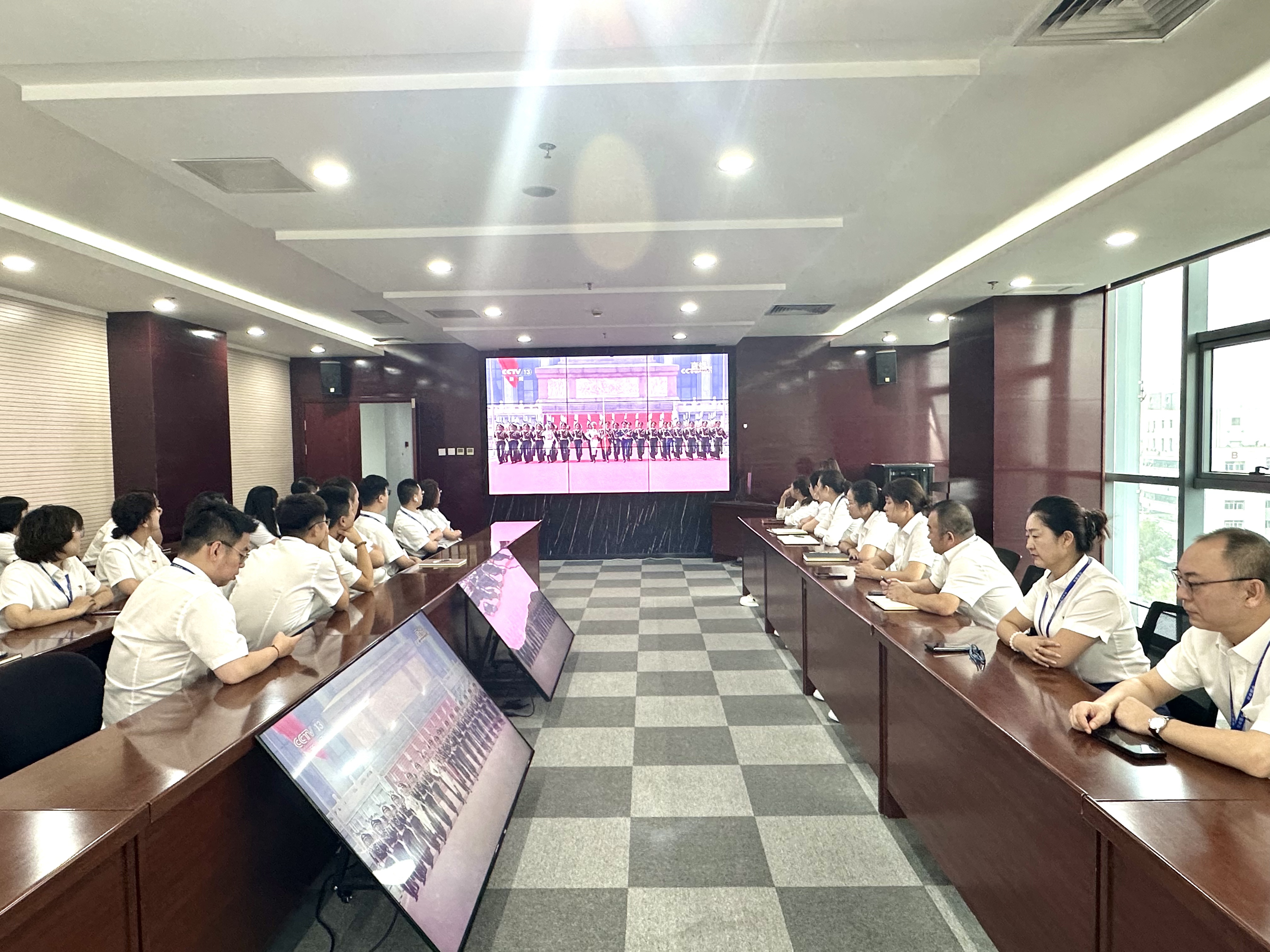 觀看過(guò)程中,全體職工始終保持肅穆姿態(tài),目光緊緊聚焦屏幕,全神貫注沉浸在儀式的莊重氛圍里。大家認(rèn)真聆聽(tīng)習(xí)近平總書記發(fā)表的重要講話,目光緊緊追隨閱兵式的每一個(gè)環(huán)節(jié)——受閱官兵邁著鏗鏘有力的步伐,以昂揚(yáng)向上的風(fēng)貌展現(xiàn)國(guó)威軍威;先進(jìn)精良的國(guó)防裝備依次亮相,生動(dòng)呈現(xiàn)國(guó)家現(xiàn)代化建設(shè)的輝煌成就與綜合國(guó)力的飛速提升。威武的受閱方陣、尖端的裝備展示、高昂的民族士氣,不僅彰顯出我國(guó)日益強(qiáng)大的國(guó)防實(shí)力與堅(jiān)韌不屈的民族精神風(fēng)貌,更向世界傳遞出中國(guó)維護(hù)和平穩(wěn)定、推動(dòng)共同發(fā)展的堅(jiān)定決心。