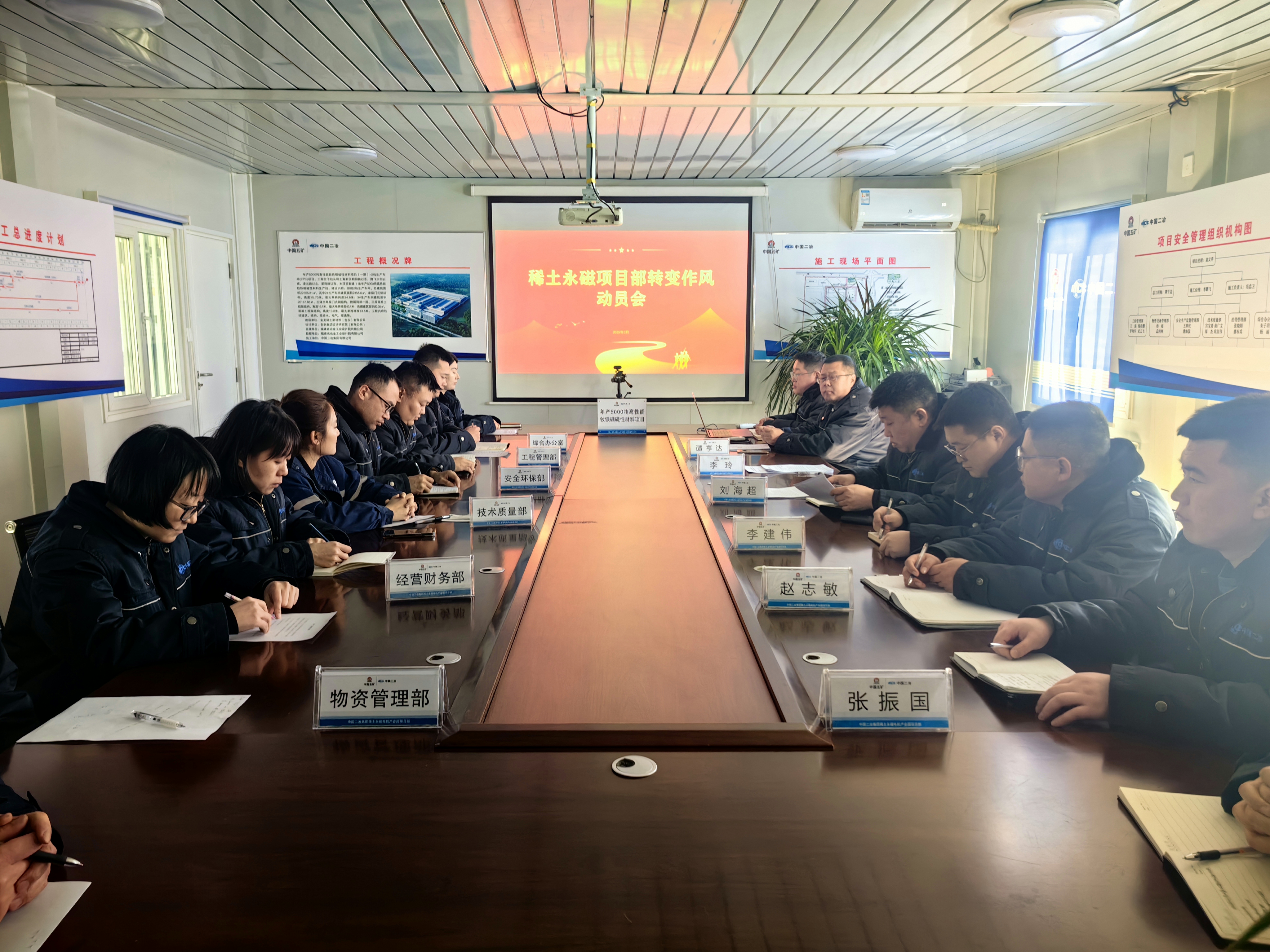 3月17日,城建分公司稀土永磁項(xiàng)目部召開轉(zhuǎn)變作風(fēng)動(dòng)員會(huì),強(qiáng)力推出“六個(gè)堅(jiān)持”加強(qiáng)作風(fēng)建設(shè),細(xì)化崗位職責(zé),舉一反三查找不足,提升工作質(zhì)量,樹新風(fēng)、立正氣,鼓足干勁實(shí)現(xiàn)全年目標(biāo)。