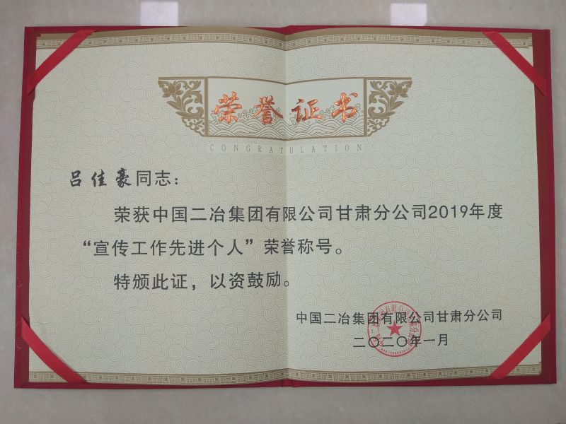 ----記中國(guó)二冶集團(tuán)甘肅分公司綜合辦公室呂佳豪