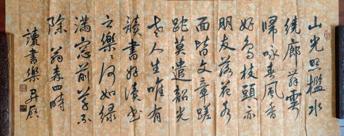 山光照檻水繞廊,舞雩歸詠春風(fēng)香。好鳥枝頭亦朋友,落花水面皆文章。蹉跎莫遣韶光老,人生唯有讀書好。讀書之樂樂何如,綠滿窗前草不除。