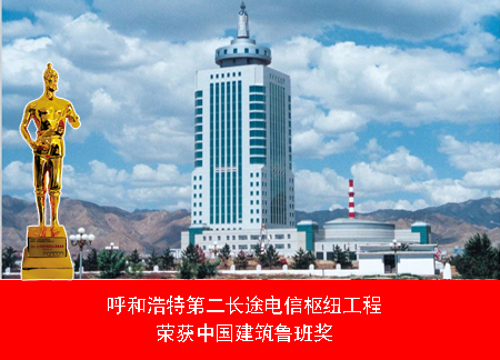 呼和浩特第二長途電信樞紐工程,是國家重點(diǎn)通訊基礎(chǔ)設(shè)備建設(shè)項(xiàng)目,內(nèi)蒙古自治區(qū)成立50周年的獻(xiàn)禮項(xiàng)目,獲得中國建筑工程“魯班獎”。