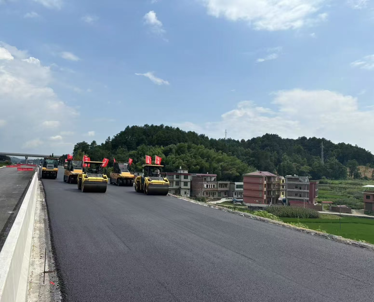 面對夏季高溫多雨等不利因素,項目部堅持“質(zhì)量與進度并重”原則,提前優(yōu)化施工方案,調(diào)配攤鋪機、壓路機等20余臺大型設(shè)備,實行“兩班倒”連續(xù)作業(yè)。通過精準(zhǔn)控制混合料配比、攤鋪厚度及壓實度,單日攤鋪量最高突破8000平方米。
