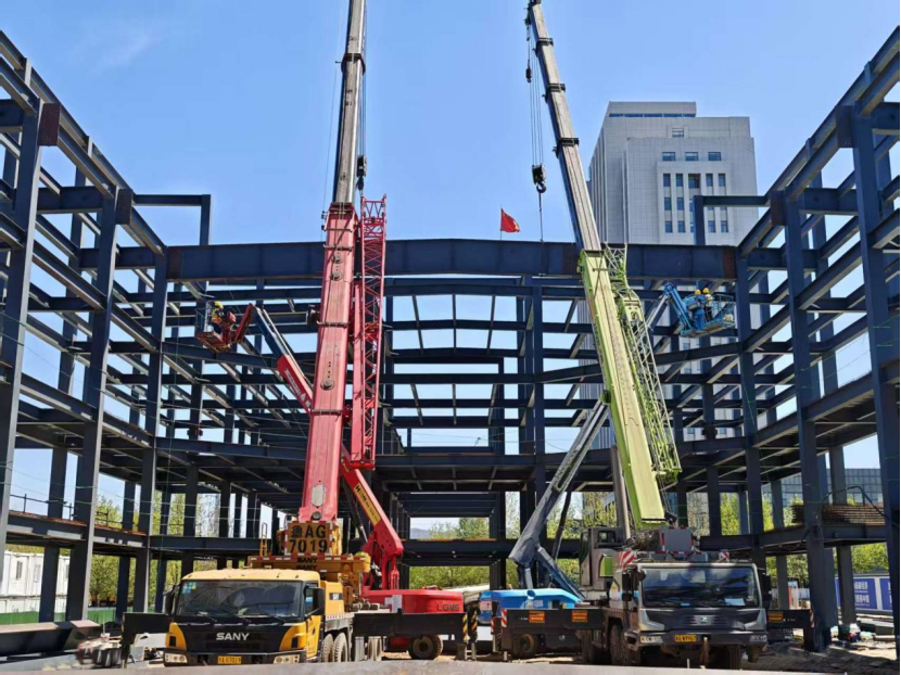 4月14日,山東分公司貝迪產(chǎn)業(yè)園項(xiàng)目3#展廳及研發(fā)樓24米大跨度屋面主鋼梁精準(zhǔn)落位,吊裝作業(yè)圓滿完成。項(xiàng)目主體結(jié)構(gòu)圓滿收官,工程建設(shè)正式進(jìn)入二次結(jié)構(gòu)、機(jī)電安裝與裝飾裝修階段。