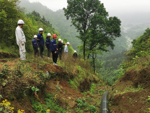 在辦實(shí)事、開新局環(huán)節(jié),全體參建人員在《踐行遵義會(huì)議精神 建設(shè)人民滿意工程》的條幅上簽名,承諾以實(shí)事求是、民主團(tuán)結(jié)的遵義會(huì)議精神為引領(lǐng),充分發(fā)揚(yáng)‘一天也不耽誤,一天也不懈怠’ 的企業(yè)精神,以高度的責(zé)任感和使命感踐行央企責(zé)任擔(dān)當(dāng),履行光榮使命。中國二冶技術(shù)人員帶領(lǐng)甲方業(yè)主、媒體朋友參觀縣縣通天然氣管道建設(shè)項(xiàng)目在建分部。該項(xiàng)目總長為187.25公里,項(xiàng)目建設(shè)內(nèi)容包括臺(tái)盤至劍河天然氣管道;鎮(zhèn)遠(yuǎn)至羊滿哨天然氣管道;羊滿哨至天柱天然氣管道;凱里至黃平天然氣管道 ;凱里至雷山天然氣管道。同時(shí)還包括施秉輸氣站、鎮(zhèn)遠(yuǎn)輸氣站、羊滿哨輸氣站、天柱輸氣站等9座輸氣站和爐山閥室、瓦寨閥室、桐林閥室、款場(chǎng)閥室、西江閥室等5座閥室及所需附屬設(shè)施。該項(xiàng)目負(fù)責(zé)人馬艷偉介紹到:“該項(xiàng)目途經(jīng)貴州省多個(gè)縣及古城,地勢(shì)險(xiǎn)峻,多為森林和陡坡,管道敷設(shè)要在懸崖和峭壁上開展,中國二冶建設(shè)者們以‘遵義會(huì)議精神’為引領(lǐng),攻克一個(gè)個(gè)難關(guān),使項(xiàng)目建設(shè)取得了突破性進(jìn)展,長輸管道的安裝成功,切實(shí)優(yōu)化了貴州省能源供給,為促進(jìn)地方經(jīng)濟(jì)社會(huì)發(fā)展起到了強(qiáng)有力的推動(dòng)作用。”