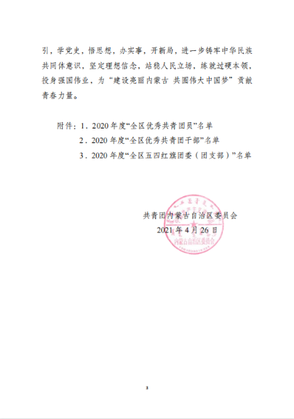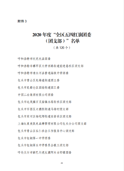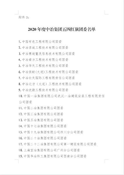 五四青年節(jié)前夕,共青團(tuán)內(nèi)蒙古自治區(qū)團(tuán)委、中冶集團(tuán)團(tuán)委分別發(fā)布表彰決定,授予中國二冶團(tuán)委“2020年度五四紅旗團(tuán)委”榮譽(yù)稱號(hào),同時(shí),公司團(tuán)委被共青團(tuán)包頭市委員會(huì)2020年工作考核等次評(píng)定為“實(shí)績(jī)突出”。