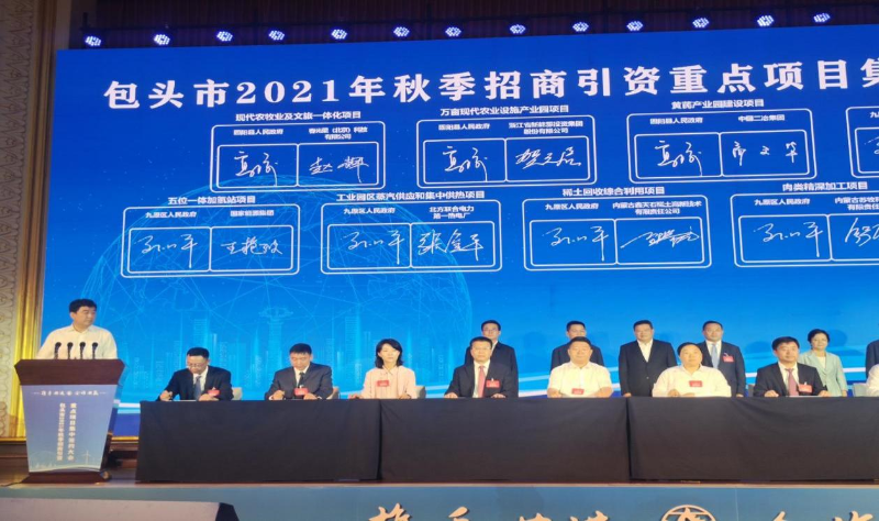 本次集中簽約項(xiàng)目共 45 個(gè),計(jì)劃總投資 1160 億元,涉及 14 個(gè)產(chǎn)業(yè)領(lǐng)域。簽約大會(huì)由中共包頭市委員會(huì)、包頭市人民政府主辦。本次大會(huì)簽約項(xiàng)目主要集中在綠色低碳領(lǐng)域。通過現(xiàn)場(chǎng)簽約與網(wǎng)絡(luò)簽約相結(jié)合的模式。其中,現(xiàn)場(chǎng)簽約項(xiàng)目共26個(gè)、網(wǎng)絡(luò)視頻簽約項(xiàng)目共19個(gè),共簽訂合作項(xiàng)目45個(gè),簽約項(xiàng)目中涉及世界500強(qiáng)企業(yè)6個(gè)、中國(guó)500強(qiáng)企業(yè)4個(gè)、中國(guó)民營(yíng)500強(qiáng)企業(yè)2個(gè)。計(jì)劃總投資 1160億元,助力綠色低碳環(huán)保循環(huán)經(jīng)濟(jì)持續(xù)發(fā)展。