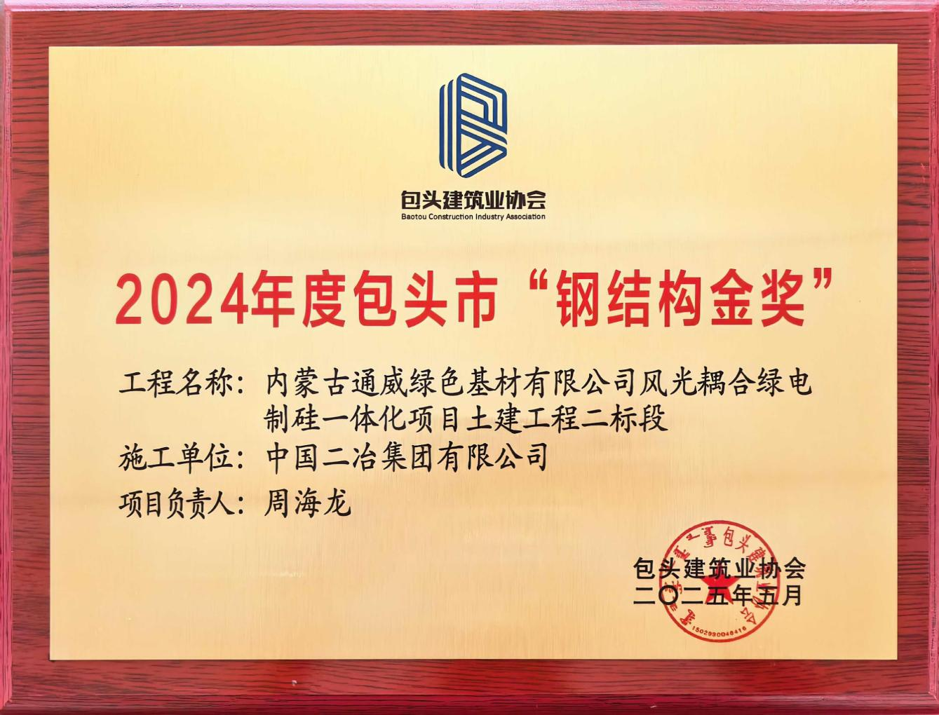近日,包頭市建筑業(yè)協(xié)會公布獲獎名單,中國二冶承建的內(nèi)蒙古通威綠色基材有限公司風(fēng)光耦合綠電制硅一體化項目、內(nèi)蒙古石拐區(qū)風(fēng)電裝備制造產(chǎn)業(yè)園標(biāo)準(zhǔn)化廠房項目榮獲包頭市“鋼結(jié)構(gòu)金獎”;內(nèi)蒙古固陽縣秦長城國家文化公園項目榮獲2024年度包頭市建筑工程“裝飾裝修獎”。