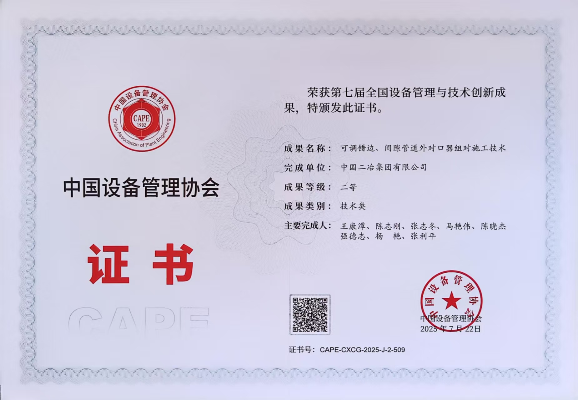 7月22日至23日,第七屆全國(guó)設(shè)備管理與技術(shù)創(chuàng)新成果交流大會(huì)在南京舉行。中國(guó)二冶申報(bào)的《可調(diào)錯(cuò)邊、間隙管道外對(duì)口器組對(duì)施工技術(shù)》從2418項(xiàng)科研成果中脫穎而出,斬獲第七屆全國(guó)設(shè)備管理與技術(shù)創(chuàng)新成果二等獎(jiǎng)。