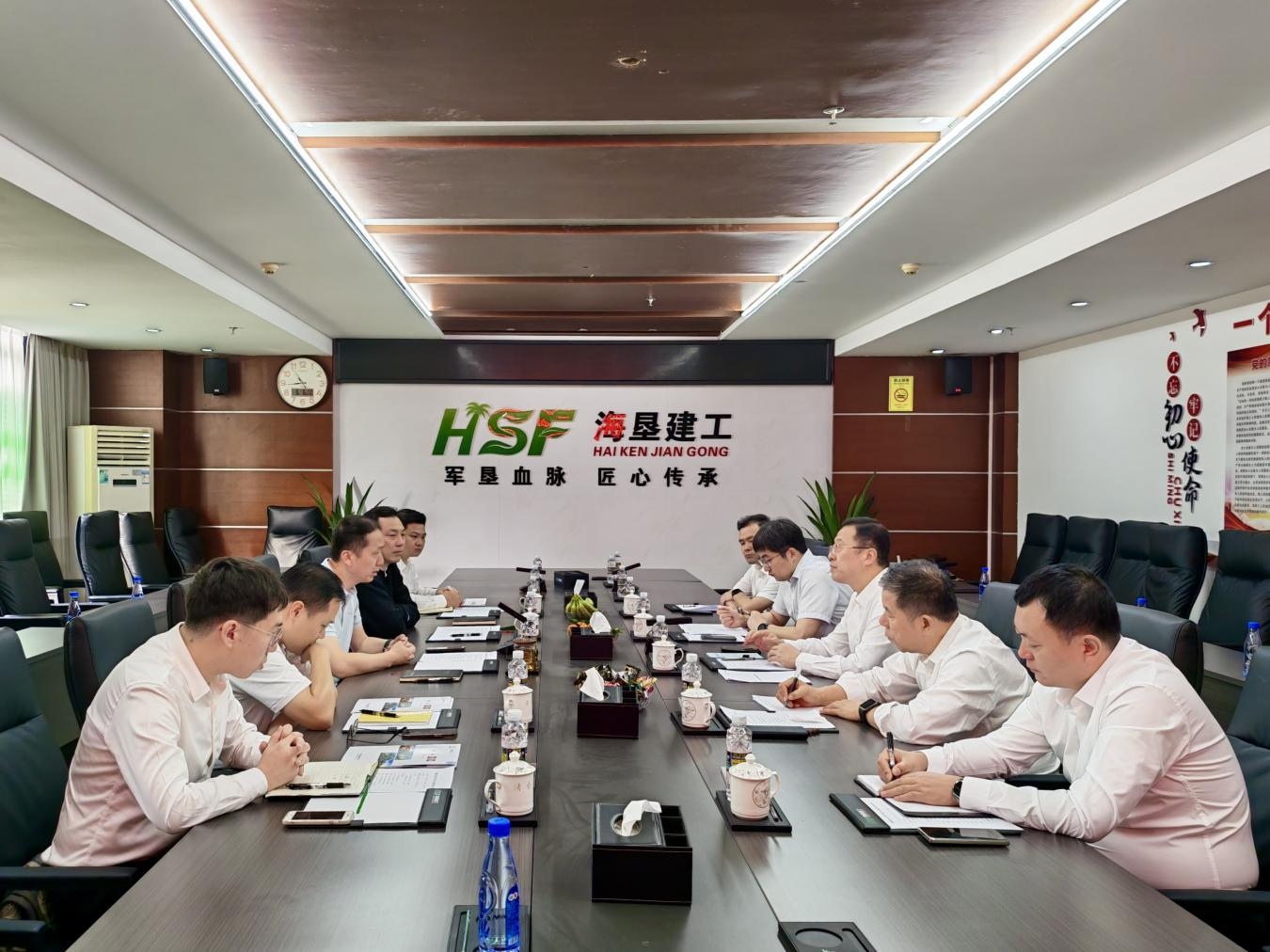 海南農(nóng)墾實(shí)業(yè)集團(tuán)有限公司副總經(jīng)理李榮濱,戰(zhàn)略企劃部負(fù)責(zé)人毛鳳鳴,成本合約部負(fù)責(zé)人陳景秋,設(shè)計(jì)研發(fā)部部長(zhǎng)石鑫;中國(guó)二冶李曦鵬、郝海飛等陪同會(huì)見。