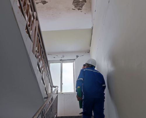 “有人嗎,我們是瀘州老窖智能化包裝中心技改項(xiàng)目先鋒隊(duì),我們來看一下房屋受損情況”。在當(dāng)?shù)赝ㄐ殴ぷ魅藛T的帶領(lǐng)下,先鋒隊(duì)一家一戶地進(jìn)行排查,但由于部分道路狹窄濕滑,車輛無法通行,只能靠步行前往,先鋒隊(duì)員們不畏路途艱難,按照既定時(shí)間完成排查工作。在排查過程中,發(fā)現(xiàn)部分機(jī)房墻外墻全是裂痕,房屋外墻墻磚脫落,吊頂零星震落在地,先鋒隊(duì)員們第一時(shí)間評估受損情況,全面開展隱患排查,反復(fù)叮囑周邊群眾遠(yuǎn)離危險(xiǎn)區(qū)域。一位先鋒隊(duì)員說道:“關(guān)鍵時(shí)刻看擔(dān)當(dāng),抗震救災(zāi),就是展現(xiàn)央企責(zé)任與擔(dān)當(dāng)?shù)臅r(shí)刻,我們要盡最大的能力,抓緊時(shí)間來檢測房屋受損情況,讓災(zāi)區(qū)人民早日放心”。
