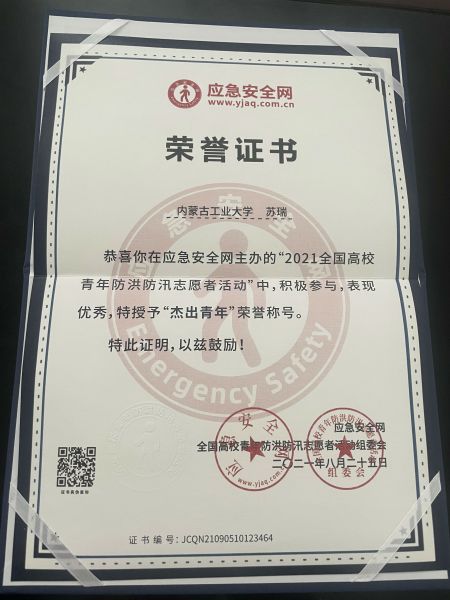 9月25日,一本記錄著路橋分公司青年員工蘇瑞愛(ài)心捐贈(zèng)的榮譽(yù)證書郵寄到大運(yùn)河項(xiàng)目部。蘇瑞向河南災(zāi)區(qū)奉獻(xiàn)愛(ài)心、捐款捐物的行動(dòng)得到了“應(yīng)急安全網(wǎng)”的褒揚(yáng),他也在“2021全國(guó)高校青年防洪防汛志愿者活動(dòng)”中被評(píng)為“杰出青年”榮譽(yù)稱號(hào)。