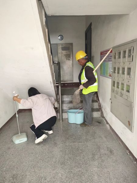 抵達社區(qū)后,項目部人員根據(jù)分配任務(wù)熱情高漲地開始了清掃工作,對小區(qū)公共場地、雜草、地面垃圾等進行了清理,對小區(qū)的健身器材進行了擦拭,對老舊停車位線進行了重新噴涂。在清理單元樓道時,項目部人員不怕辛苦,仔細耐心地清理了張貼在樓道墻上的小廣告,擦拭了樓道扶手,對樓道內(nèi)自行車輛進行了重新地擺放。經(jīng)過項目部人員的共同努力,社區(qū)環(huán)境煥然一新,為社區(qū)居民營造了一個干干凈凈的居住環(huán)境。