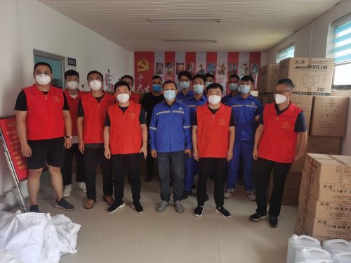 自曹縣本土疫情發(fā)生后,項(xiàng)目部迅速組織投入疫情防控工作,主動(dòng)聯(lián)系邵莊鎮(zhèn)人民政府,了解到疫區(qū)的實(shí)際情況后,根據(jù)疫區(qū)所缺物資,立即進(jìn)行防疫物資采購并送往疫區(qū)。一輛輛滿載防疫物資的車輛紛至沓來,一位位管理人員揮汗如雨,搬運(yùn)、卸貨,很快防疫物資堆成了小山,其中捐贈口罩20000只、消毒液100公斤、方便面100箱、礦泉水4箱。
