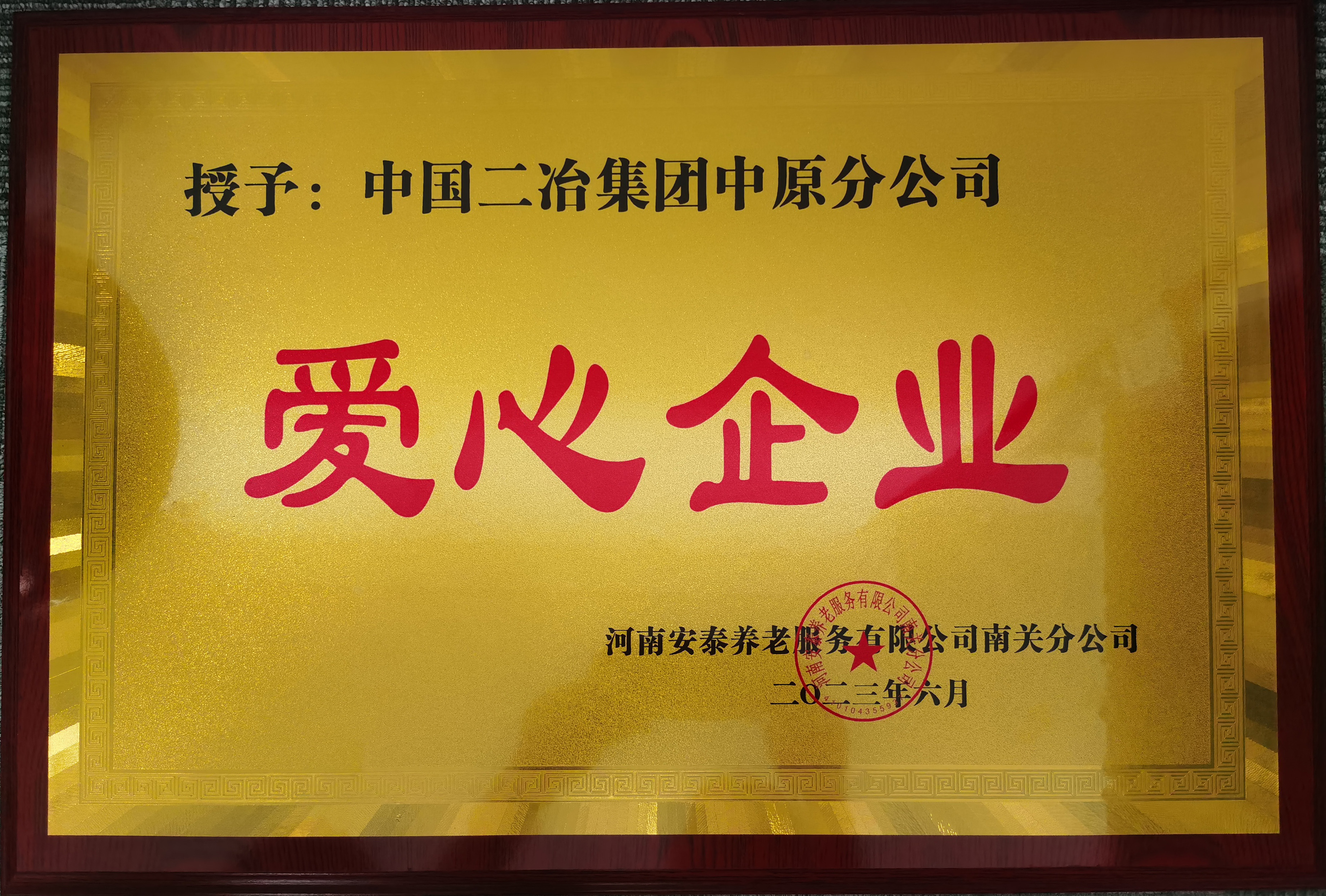 涓涓細(xì)流可匯成海,綿薄之力可筑城墻。6月27日,中國二冶集團中原分公司收到來自鄭州市青少年宮、鄭州市河南安泰養(yǎng)老服務(wù)有限公司管城分公司兩家單位頒發(fā)的“愛心企業(yè)”榮譽牌匾。