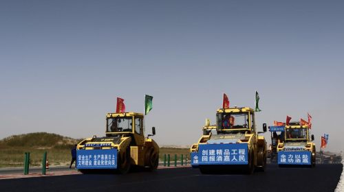 10月的河西走廊,已經(jīng)出現(xiàn)了寒意,冷風環(huán)繞著項目部不停的吹,項目部的員工已經(jīng)換上了厚衣服,而在酒嘉項目的施工現(xiàn)場,壓路機、攤鋪機的轟鳴聲震耳欲聾,重型卡車來回穿梭,多個作業(yè)面、幾十輛工程機械緊張作業(yè),到處是一派熱火朝天、大干快干的生動場面。
