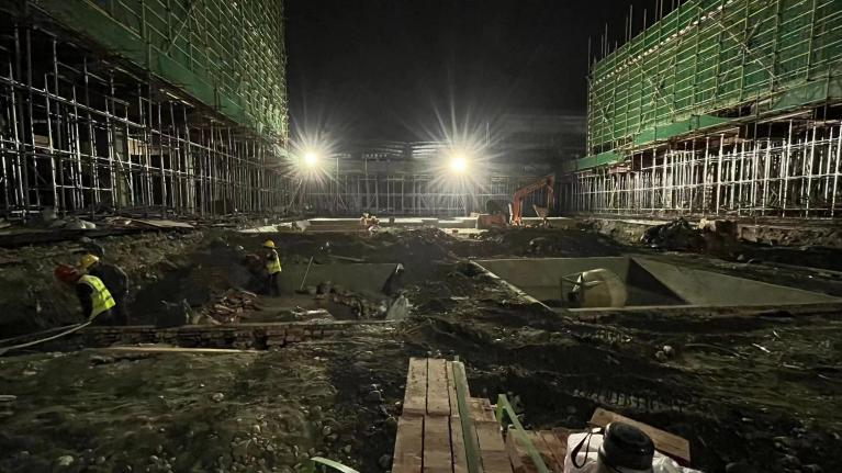 夜晚,山寒水冷,走進(jìn)資陽騮馬新村安置房項目,只見塔吊林立,大型挖掘機(jī)正在開挖作業(yè),建筑工人在工作崗位上緊張忙碌,綁扎鋼筋、支設(shè)木板,現(xiàn)場一片熱火朝天的景象。該項目全體人員充分發(fā)揮迎難攻堅精神,不等不靠,對照總體工期安排和當(dāng)前施工進(jìn)度,科學(xué)倒排工期,嚴(yán)格節(jié)點管理,強化人員分工。在確保項目安全質(zhì)量的同時,抓住夜間人員稀少、交通流量小的良好機(jī)會,抓緊組織人員,展開對急難險重任務(wù)的突擊作業(yè),確保每個作業(yè)面“飽和式”施工。分公司領(lǐng)導(dǎo)班子成員帶頭下沉至一線,實時管控現(xiàn)場進(jìn)度,確保天天有進(jìn)展、周周有變化。機(jī)關(guān)各部室則成立現(xiàn)場督導(dǎo)檢查小組,聚焦施工一線,總結(jié)現(xiàn)場進(jìn)展,解決實際問題,梳理剩余任務(wù),為施工生產(chǎn)保駕護(hù)航。