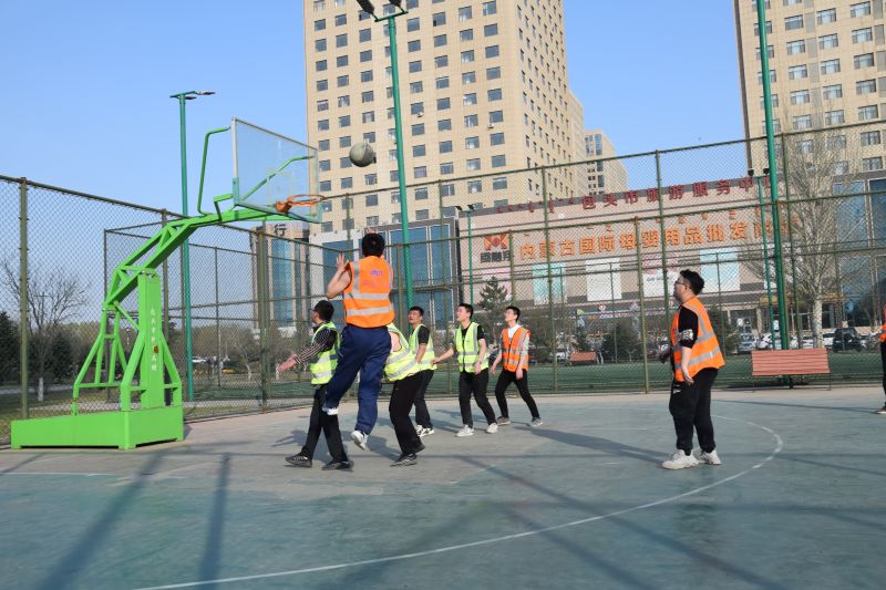 城建分公司商務大廈項目部現(xiàn)有團員青年13名,占項目在崗職工總數(shù)的65%。其中黨員7名,占團員青年總數(shù)的54%。項目部團支部自2019年成立后,緊扣黨建帶團建,黨有號召團有行動的號令,團員青年、青年黨員沖鋒在施工一線,闖關奪隘,在商務大廈、都市庭苑項目疫情防控、奮戰(zhàn)120天勞動競賽中完成了多項施工節(jié)點,青年黨員、團員青年在施工中冒強風頂暴雨,戰(zhàn)晴天斗嚴寒,晝夜奮戰(zhàn),團員青年壓力大工作環(huán)境極其艱苦,為了緩解團員的壓力,調動黨員、團員青年的積極性,項目部以“學黨史、悟思想、辦實事”為主線,由團支部組織,展開籃球對手賽?;顒右潦?,團支部書記詳細介紹了本次半場籃球比賽的規(guī)則,全程實行記分制,進球一顆得一分,不進球不得分,最先達到5分獲勝。4月22日下午5點30分,活動首先通過轉球形式分為兩隊,兩隊隊員摩拳擦掌,躍躍欲試,兩隊緊盯裁判哨聲和籃球,只聽哨聲一響,籃球飛躍空中,兩隊隊員奮力拼殺搶球,拉開了籃球對手賽,本著友誼第一比賽第二的賽事原則,隊員們密切配合,一個眼神一個傳球動作都是隊員默契傳球的暗號,賽場上你爭我奪,隊員們身形敏捷,輾轉騰挪,經(jīng)過激烈比拼,比賽采用三局兩勝制,最終黃馬甲隊贏得2局獲勝。