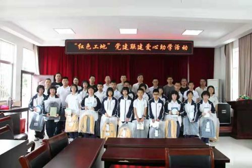 天長北路安置項(xiàng)目部聯(lián)合臺州黃巖中環(huán)房地產(chǎn)開發(fā)有限公司、黃巖區(qū)建筑工程質(zhì)量安全事務(wù)中心黨支部和黃巖區(qū)頭陀鎮(zhèn)中學(xué)黨支部,以黨建聯(lián)建為載體,以捐資助學(xué)、唱紅歌、講紅色故事為活動(dòng)抓手,為頭陀鎮(zhèn)中學(xué)生活困難的學(xué)生送上書包、書本等物品,讓紅色文化在孩子們的心里落地生根,將紅色基因代代相傳。