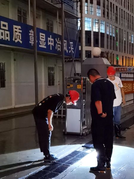 風(fēng)雨將至,但安全隱患未除,身著“中冶藍”的建設(shè)者們總是不放心?,F(xiàn)場人員全部得到妥善安置后,項目部防臺防汛領(lǐng)導(dǎo)小組逆風(fēng)而行冒雨深入施工現(xiàn)場,對臺風(fēng)天氣下可能存在的安全隱患進行逐一排查,當(dāng)場發(fā)現(xiàn)問題,當(dāng)場加固整改。為了防止出現(xiàn)人員反流,項目部堅持夜間巡查制度,對施工現(xiàn)場及作業(yè)生活區(qū)進行值守,做好現(xiàn)場基坑降排水措施,防治基礎(chǔ)泡水及雨水倒灌,將災(zāi)害損失降到最低。