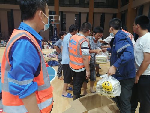 “中冶藍”為臨時安置點人員送上熱乎飯菜
