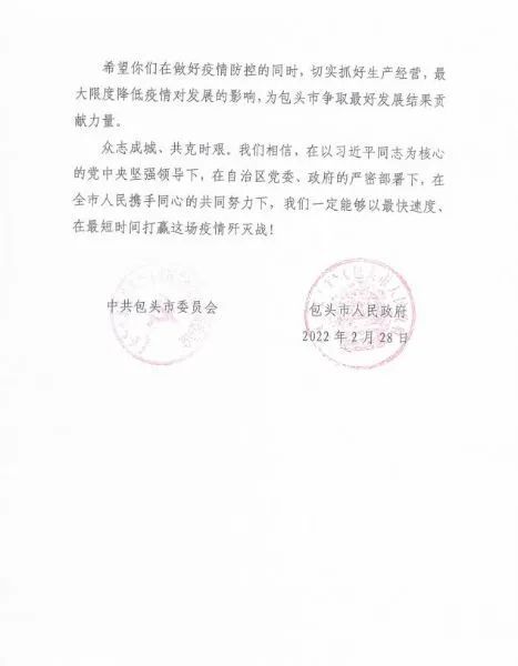 近日,中國二冶相繼收到了包頭市委、市政府、包頭昆河鎮(zhèn)政府、包頭前進(jìn)道辦事處、昆北街道辦事處和少先路街道辦事處的感謝信,感謝中國二冶在此次疫情防控戰(zhàn)役中高站位、講政治、講紀(jì)律,認(rèn)真貫徹落實(shí)市委市政府和上級單位有關(guān)疫情防控工作要求,不折不扣地執(zhí)行防控措施,在確保廣大員工生命安全的同時(shí),肩負(fù)起央企的責(zé)任和使命,用有力的支持和快速的行動(dòng),全力助力疫情防控,為包頭市疫情防控工作貢獻(xiàn)央企力量。