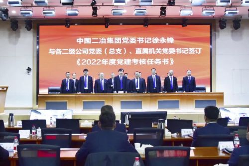 徐永鋒與各分公司黨委(總支)書記簽訂《2022年度黨建考核任務書》。
